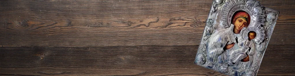 Наше внимание сосредотачивает прекрасная Икона Божией Матери антиквариат разных эпох. Многие православные церкви имеют ее изображение не только на иконостасе, но и на стенах, потолках и в арках. Православная Церковь считает, что Мария — это человек, самый близкий к Богу. Эта очень выдающаяся икона напоминает о ее важной роли в Воплощении Сына Божьего.